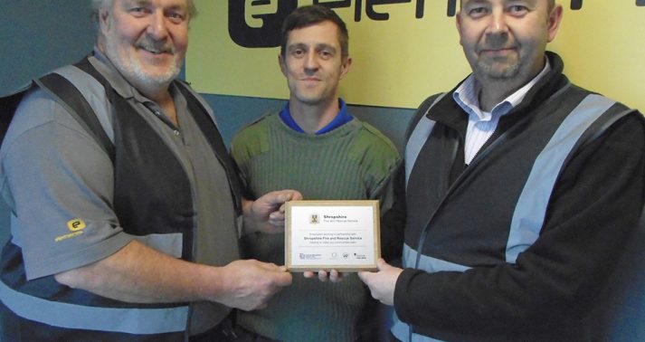 Elements Europe has been presented with a plaque from Shropshire Fire and Rescue, in recognition for employing a part time firefighter.