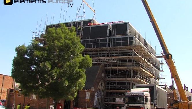 A 120 bed student accommodation scheme in Lincoln is featured in the film, a site which was logistically challenging due to its very constrained position. The scheme which was executed as a turnkey solution by The Pickstock Group shows just how efficient the process is when Elements Europe works in collaboration with its parent construction company JR Pickstock Ltd, completing the build in just 28 weeks.